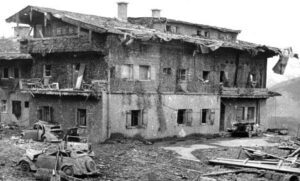 After being demobilised, Private Packer was one of 12 invited on a sightseeing trip by the Americans. After making a few pitstops along the way, Packer’s party arrived in Bertchesgarden, a German town in the Bavarian Alps and on the Austrian border where Hitler’s Berghof (Mountain place) stood. Berghof was one of Hitler’s holiday retreats and it is believed he spent more time here than in Berlin. The site had been badly hit and Packer remarked that “(t)he R.A.F. must have really enjoyed themselves” in a letter to his family. The windows were no more, the projection room was “in ruins” and the red marble fireplace was “a bit shaken now!”