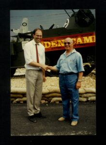 When Otto Vengele heard from his friends ‘back in England’, that his previous home Eden Camp had been turned into a museum, he came back to visit in 1992. Here, he met the then General Manager, Steve Jacques, and told of his experience as POW no. 62 in England.