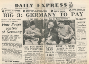 The Yalta Conference, beginning on 4th February and ending on 11th February 1945 was a major World War Two conference of the three chief Allied leaders—President Franklin D. Roosevelt of the United States, Prime Minister Winston Churchill of Great Britain, and Premier Joseph Stalin of the Soviet Union—which met at Yalta in Crimea to plan the final defeat and occupation of Nazi Germany.[1]