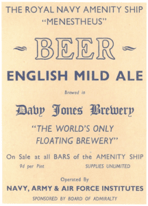George Brown from the famous Truman’s Brewery (active from the 17th century until its close in the 1980s) of London was made head brewer. He produced the ship’s first batch of beer on New Year’s Eve 1945. Needing only eight days to ferment and settle, the second batch was on the go by January 7th, 1946. Though the ship wasn’t fitted out to be working while in motion, when it was stationary, the HMS Menestheus was able to pump out 250 British-sized barrels per week.