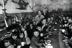 Christmas luxuries were especially hard to come by at a time when even basic foods were scarce. People were forced to find substitutes for key festive ingredients. Gifts were often homemade and practical, and children’s toys were often made from recycled materials. Cards were smaller and printed on flimsy paper.