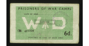 Camp money (identified by the Camp 250 Stamp) was paid to prisoners for the work that they undertook across the camp during and after the war. Although they could not spend it in the local shops of Malton in their free time, the Prisoners were able to utilise their money in the camp ‘shop’ to buy items like extra toiletries, writing materials, or food items which were not on ration.