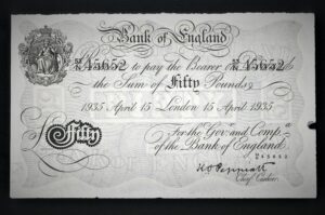 The Bank of England first learned of a plot from a spy as early as 1939. It detected the existence of the notes in 1943 and declared them “the most dangerous ever seen.” Clerks first recorded the counterfeits from a British bank in Tangiers. As late as the 1940s every banknote issued by the Bank of England was recorded in large leather-bound ledgers, still in the Bank’s archives, and it was noted that one of the notes had been recorded as having been paid off.