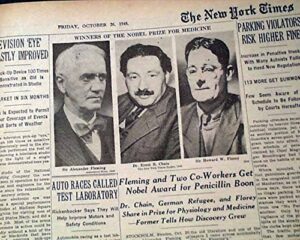 Research was then carried out into the development of new drugs that acted on the principal that some microbes might destroy others. In 1939, Professor Willian Florey and Ernst Chain (A Jewish refugee from Nazi Germany), both who studied Pathology in Oxford, began investigating the anti-bacterial properties of assorted organic matter including Penicillium Nottum, first noted by Alexander Fleming ten years earlier.