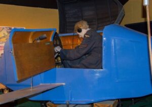 The Link Trainer, also known as the ‘Blue Box’ and ‘Pilot Trainer’, was produced from the early 1930s. In 1937, the first Link Trainers were delivered to the RAF, however, it was during World War Two that these simulators became famous, when they were used as a key pilot training aid by almost every combatant nation. Pilots could learn how to fly their aircraft in blind flying conditions such as cloud, fog and darkness – an essential skill known as Instrument Flying. A pilot could safely practice his skills flying entirely on instruments without having to be in the air.