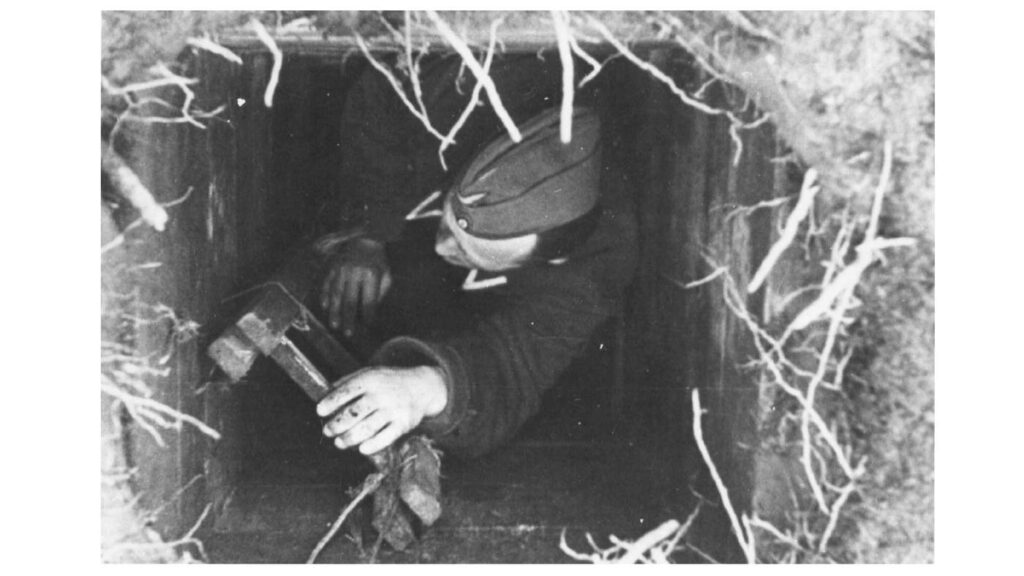 The site was selected for two reasons. First it was in the middle of occupied Europe and therefore any escaper would have to travel a very long distance to reach a neutral country: Sweden, Spain, and Switzerland being the closest. Second, the sandy soil made tunnelling difficult because it caved in so easily, and the yellow subsoil stood out clearly against the grey surface dust. It could not be dumped just anywhere without being seen by the camp guards. Furthermore, the sand could easily be spotted on the prisoners’ clothing giving it away that a tunnel had been dug somewhere.