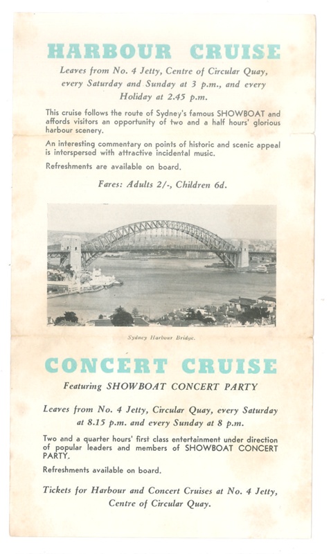 Name/TitleTourist leaflet - "Sydney Australia" - harbour cruise - concert curise - head of rivers trip