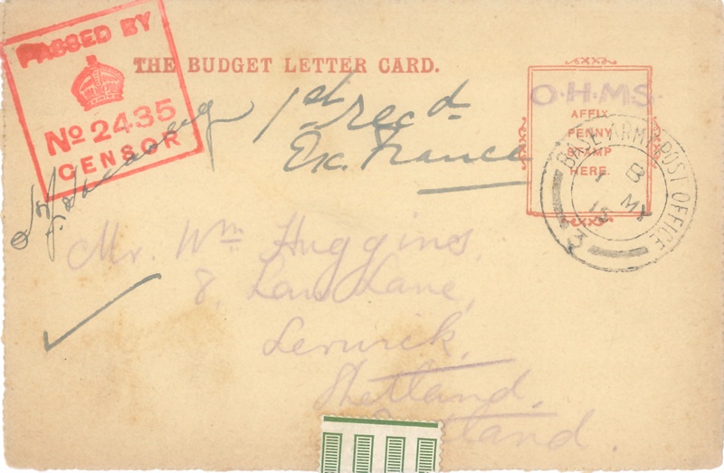 Name/TitleWW1 Letter home from Harry Huggins April 1915 to his father in Lerwick.