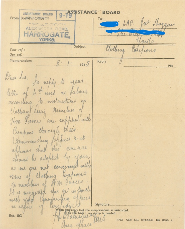 Name/TitleApplication Form to the assistance Board for clothing coupons by J.W. Huggins 1504276