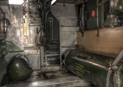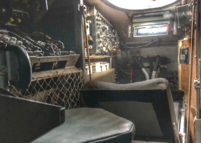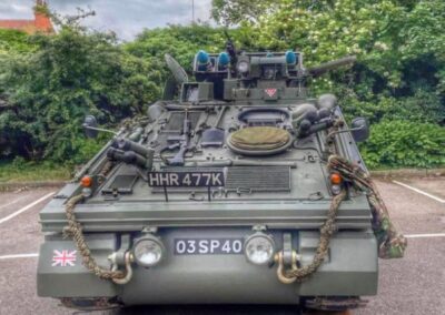 This particular Striker was 1 of 4 manufactured as a Prototype/Trials Vehicle (designated P28) back in 1972 and was set aside for ‘Special Projects’ hence the SP number plate. It spent most of its life at the MVEE in Chertsey where it undertook extensive battlefield trials and guidance development. Initially, all CVR(T) vehicles were powered by the Jaguar J60 4.2-Litre 6-cylinder petrol engine which produced 265bhp, but were down rated to 195bhp for longer service life. This engine was chosen because it was commercially available and had high power-to-weight ratio. Later it was replaced under the LEP ‘Life Extension Programme’ with the Cummins BTA 5.9 Ltr diesel engine, which had a better fuel economy and similar performance. The vehicles were largely constructed from Armoured Aluminium to allow them to be Air Transportable by Hercules Aircraft and were fitted with collapsible floatation screens to enable them to be amphibious. This vehicle still has the screen fitted but these were removed from nearly all CVR(T)s back in the early 1980s.