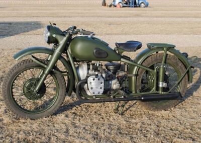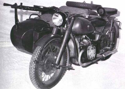 Development of the M-72 commenced in 1940 at the Moscow Motor Works (MMZ – Moscow Motor Zavod) with the M71 model. The subsequent M72 was a much-improved model and was also built in Leningrad. Due to the war, manufacture was moved out from Moscow to Irbit (IMZ) and Leningrad to Gorky (GMZ).
